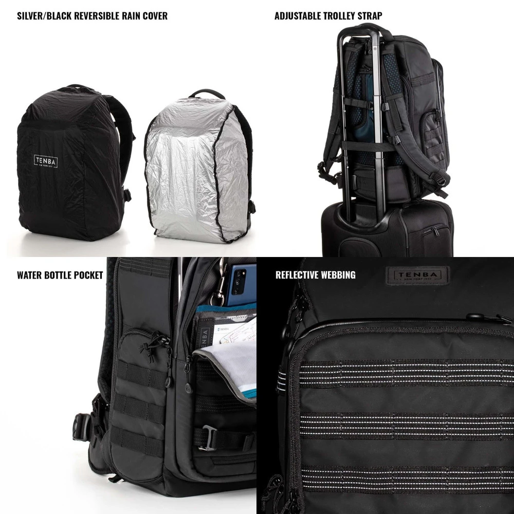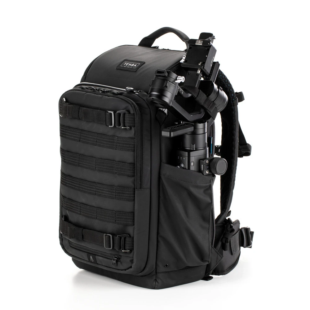 Tenba’s tactical Axis bags were inspired by the ultra-durable bags we’ve made for the military throughout our 40+ year history. The 20L backpack will fit 1-2 Mirrorless, DSLR or Cine cameras with 5-7 lenses, up to 300mm 2.8, plus a laptop up to 14 inches (35 cm). It also fits a DJI Mavic and other compact drones. MOLLE webbing allows limitless expandability with Tenba Tools, such as Lens Capsules, Battery Pouches and Memory Card Wallets, as well as a multitude of military-standard pouches and accessories. Tenba’s Airflow harness and auto-adjusting Pivot-Fit Straps allow the pack to comfortably fit users of all sizes. This backpack features 3 points of camera access (top, side and rear), and it’s the first camera bag to include a hidden pocket compatible with an Apple AirTag or Tile Bluetooth Tracker.
