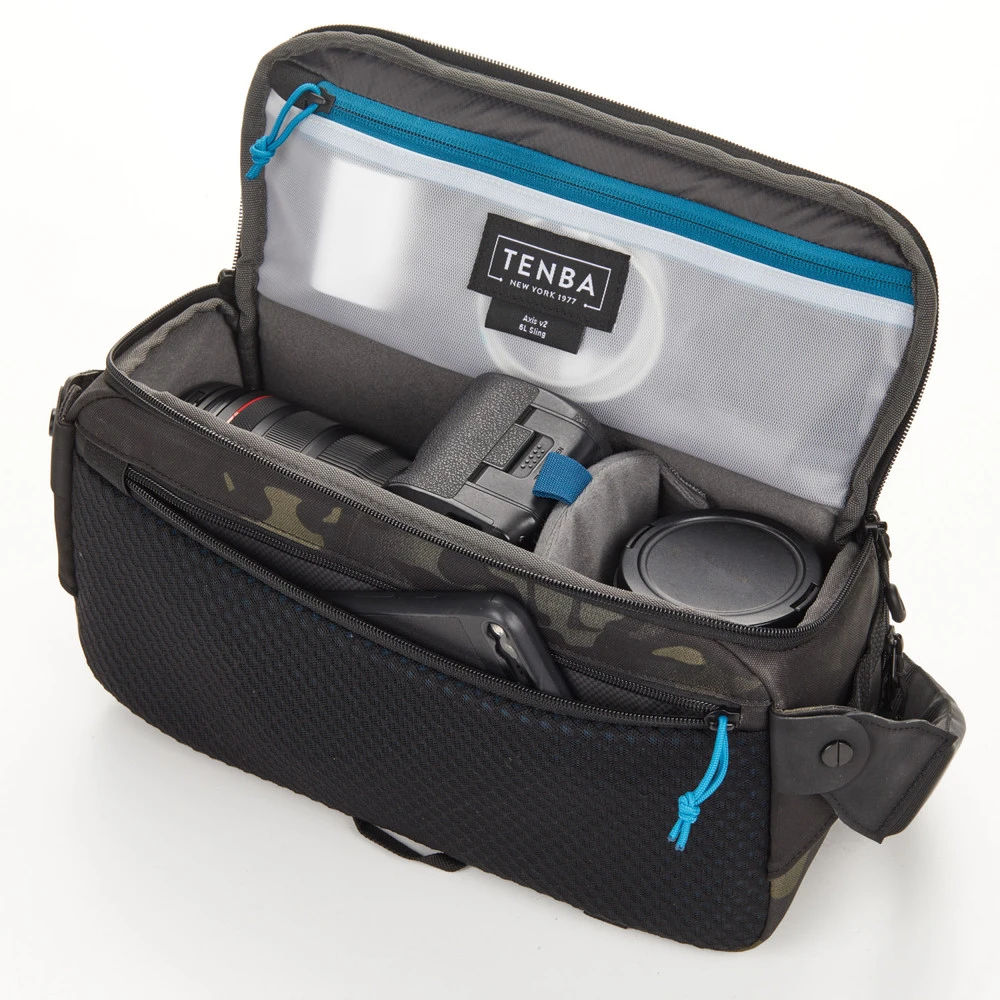 Tenba’s tactical Axis bags were inspired by the ultra-durable bags we’ve made for the military throughout our 40+ year history. The 6L sliing bag will fit a mirrorless or DSLR camera with 2-3 lenses (up to 70-200mm 2.8), or it can fit a DJI Mavic drone kit. The bag can be instantly converted from sling to a waist pack. MOLLE webbing allows expandability with Tenba Tools Battery Pouches and Memory Card Wallets, as well as a multitude of military-standard pouches and accessories. Soft, body-contouring memory foam in the strap ensures all-day carrying comfort. Straps on the bottom will fit a tripod or monopod, and as with other Axis v2 bags, there is a hidden pocket compatible with an Apple AirTag or Tile Bluetooth Tracker.