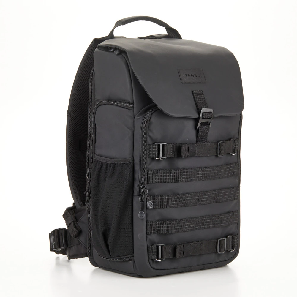 Tenba’s tactical Axis bags were inspired by the ultra-durable bags we’ve made for the military throughout our 40+ year history. The 20L LT backpack will fit 1-2 Mirrorless or DSLR cameras with 4-6 lenses, up to an attached 70-200mm 2.8, plus a laptop up to 16 inches (40 cm). Under the flap, there’s a convertible daypack section that you can either use for more camera gear, like 2 lenses, or a drone kit, or you can use if for an afternoon’s worth of food, or a rain jacket. MOLLE webbing allows limitless expandability with Tenba Tools, such as Lens Capsules, Battery Pouches and Memory Card Wallets, as well as a multitude of military-standard pouches and accessories. Tenba’s Airflow harness and auto-adjusting Pivot-Fit Straps allow the pack to comfortably fit users of all sizes. This backpack features dual side camera access, and as with other Axis v2 bags, there is a hidden pocket compatible with an Apple AirTag or Tile Bluetooth Tracker.