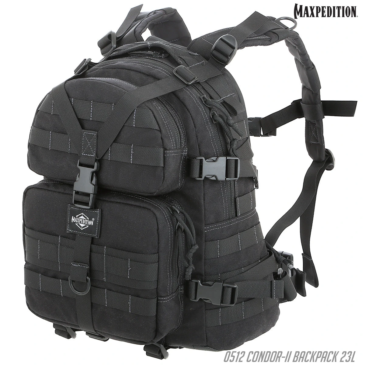 The popular Condor-II Backpack has a medium-sized design, but its surprisingly spacious interior can accommodate over 1350 cubic inches of gear and a 100oz/3L hydration reservoir with b-directional tube port (not included). However, what really makes the Condor II unique is that it’s designed with more exterior PALS webbing than any Maxpedition backpack available. Its load bearing capability can be expanded greatly by using TacTie® Attachment Straps to interact with a variety of Maxpedition external pouches, pockets, and accessories.