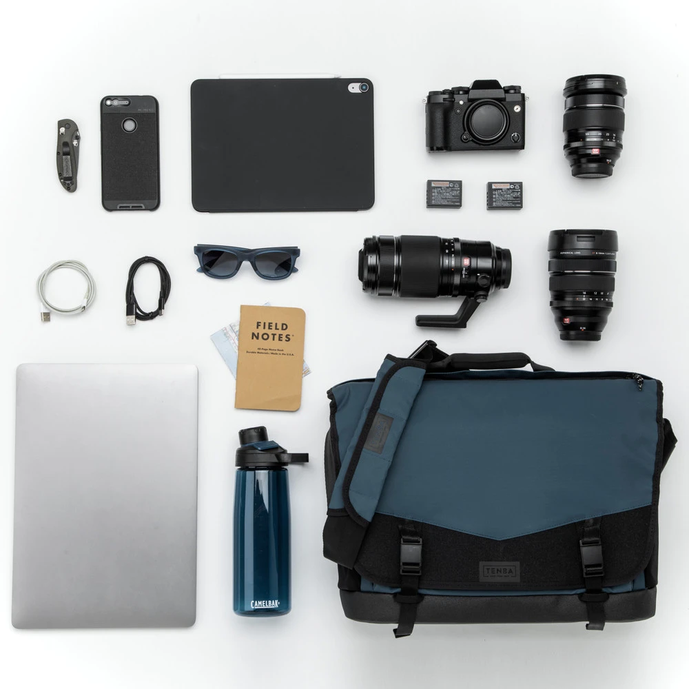 The DNA 16 Slim Messenger Bag will fit a mirrorless or DSLR camera with 4-6 lenses (up to attached 70-200mm 2.8) plus flash and accessories, along with a laptop up to 16 inches (40 cm) and a tablet up to 11 inches (28 cm) such as the iPad 11 Pro. It was built for seamless transitions between photojournalism and sports photography, urban exploration and adventure travel, and every conceivable kind of social event. If there was ever “one bag to rule them all,” this is it. The DNA Messenger is often imitated, never duplicated, and always ready for work. It features a Quick Access top zipper, a seam-sealed and completely waterproof bottom, Tenba’s signature Whisper-Hook quiet closure, and a removable camera insert.