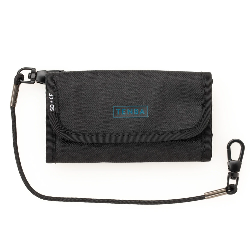 The Reload SD6+CF6 memory card wallet carries up to 6 SD cards (or Micro SD with an adapter) and 6 CF cards. It has a rear hook and loop flap that attaches to a belt, shoulder strap, backpack harness or other MOLLE-compatible loops to keep memory cards close at hand. Tenba’s unique angled pockets make it easy to remove cards quickly, and the included security cable connects to a D-ring on a bag or tripod for safety. A clear pocket on the back provides storage for business cards.