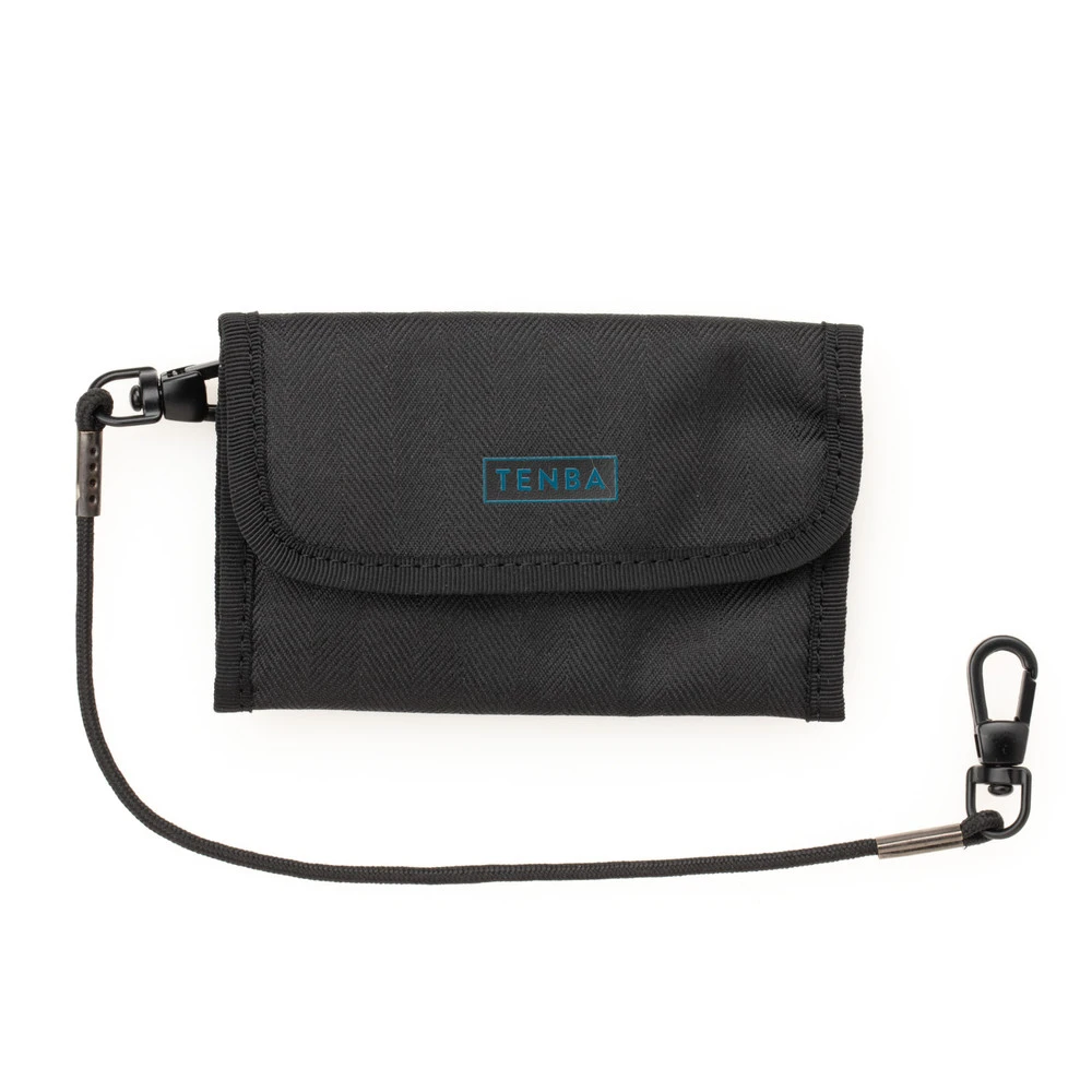 The Reload Universal memory card wallet carries up to 8 CF cards, 12 SD cards or unlimited Micro SD cards. Two pockets with yellow and red zippers allow multiple memory card styles to be sorted by Empty and Full status. The wallet has a velcro loop to attach to a belt, shoulder strap, backpack harness or other MOLLE-compatible loops to keep memory cards close at hand. The included security cable connects to a D-ring on a bag or tripod for safety. A clear pocket on the back provides storage for business cards.